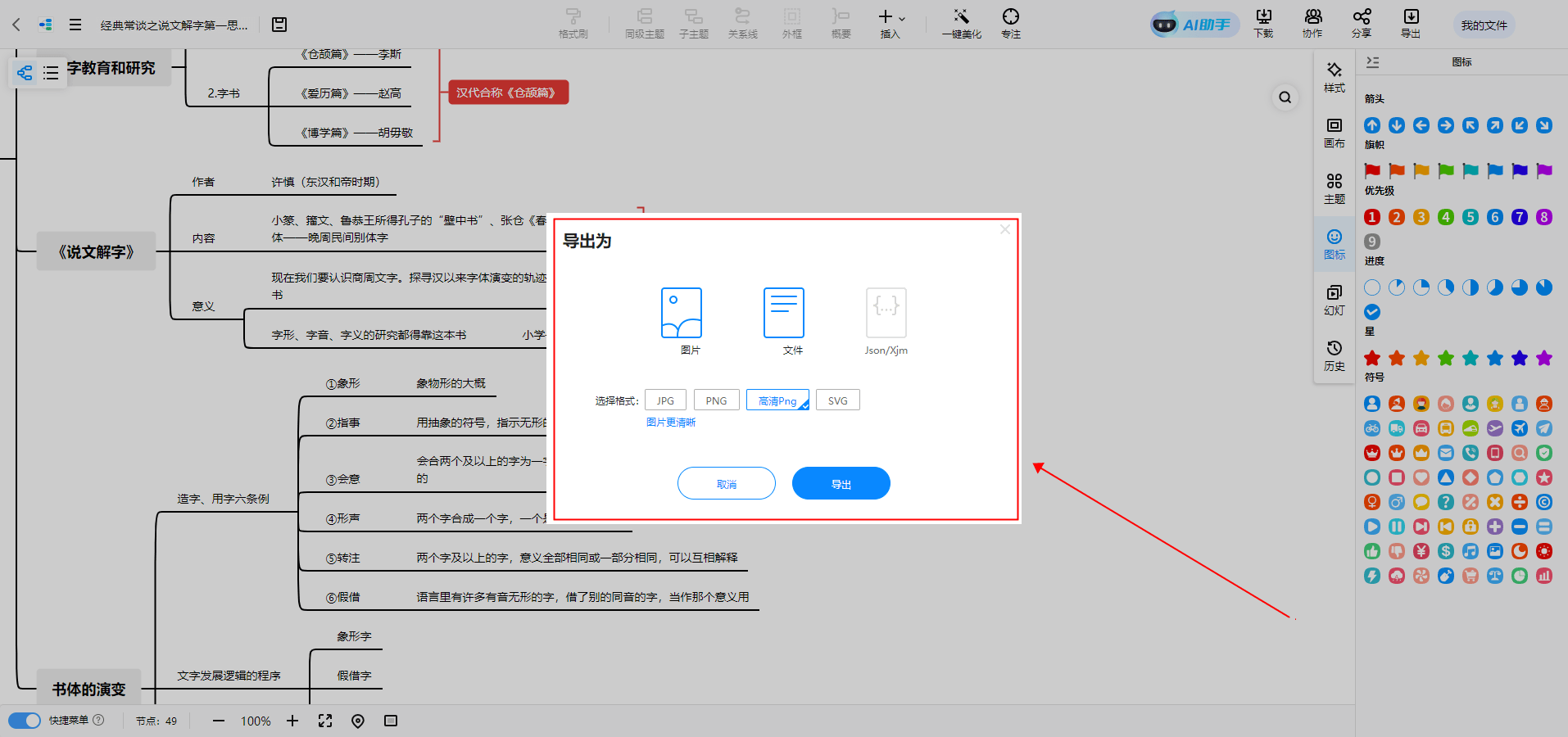 五、导出或共享你的思维导图