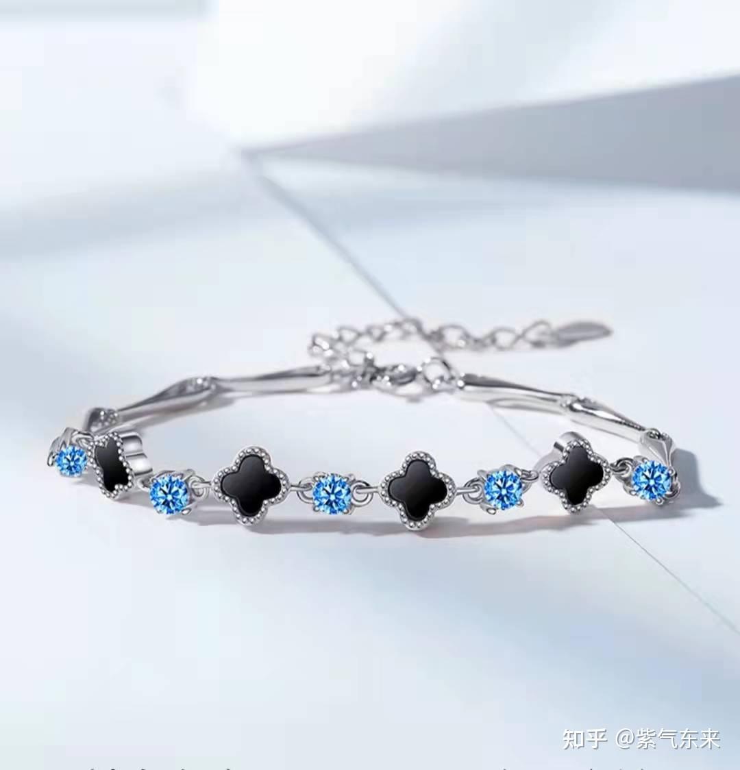 满满的设计感的一条四叶草手链,运用极为经典的幸运四叶草元素,加入特别的黑玛瑙与施华洛世奇锆石打造出新意感,它被誉为长寿之石,长期佩戴有助于缓解压力,加上优质的银色电度层,整体看起来是精致感十足的!