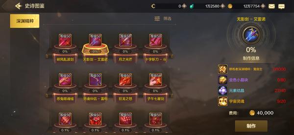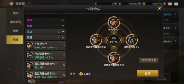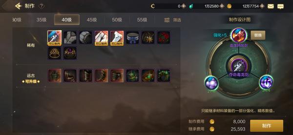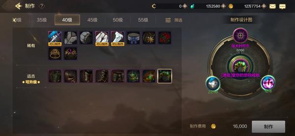 而稀有/神器级别的装备获取全部可以通过装备制作系统产出,低级的紫装可以向上一梯度合成,需要消耗对应材料和灵魂。