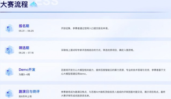 该创业大赛将为参赛团队提供文心大模型相关能力以及百度智能云算力资源,并邀请来自IDG资本、百度风投、百度资本等知名机构的投资人与百度AI专家担任评审。获奖团队有机会获得总值1000万元、500万元和200万元的资金与资源投资,以及AI大模型技术辅导与交流赋能。