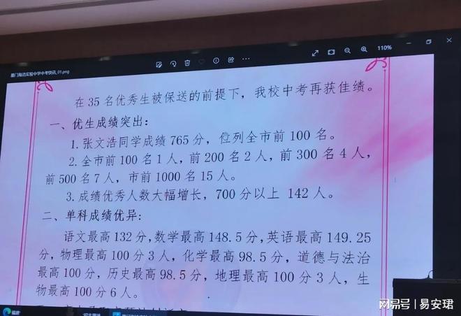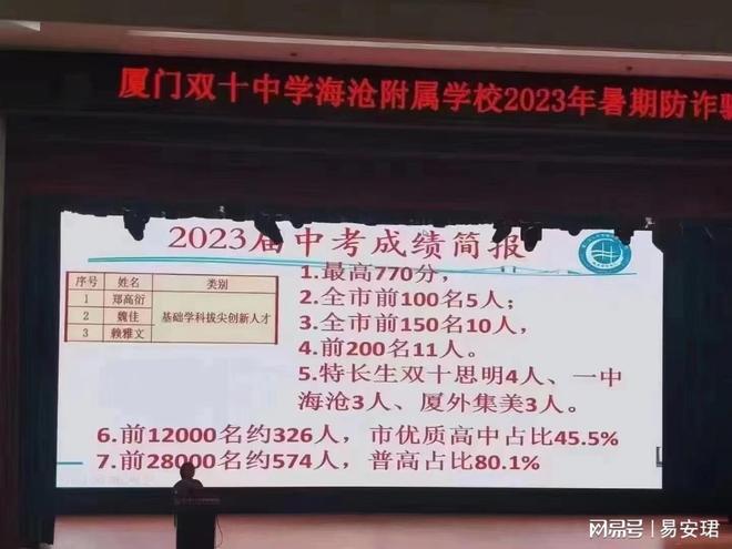据网友统计:湖里区厦门市金鹰学校今年中考毕业班39人里有5个孩子上了700分。其中,732分1人,731分1人,728分1人,710分1人,704分1人,占比达13%!