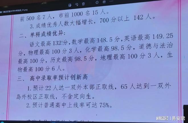 今年中考滨水学校共有2名考生进入全市前100名,4名考生进入全市前500名,7名考生进入全市前1000名,17名考生进入全市前2000名。