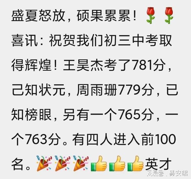 今年厦门市中考状元王昊杰781分,厦门市中考榜眼周雨珊779分,都是来自于英才学校初三年一班!