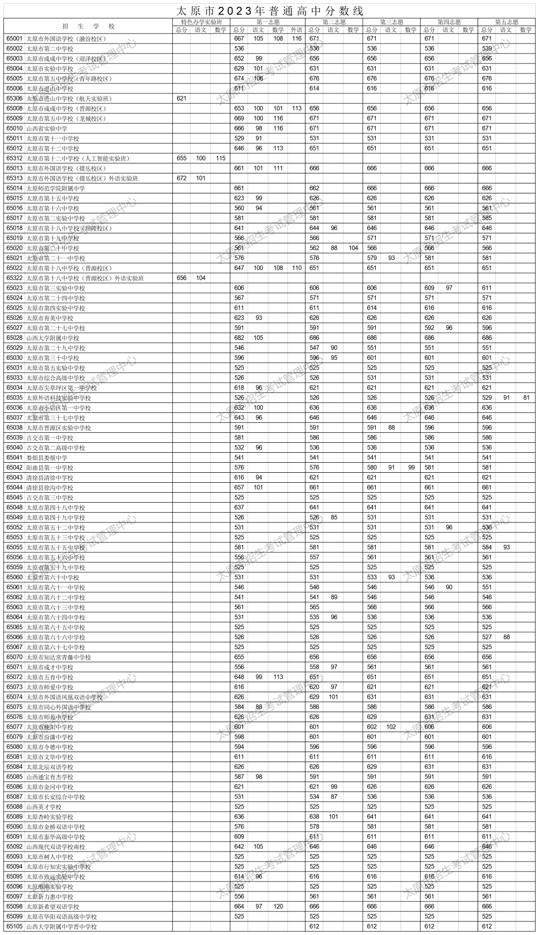 太原市2023年普通高中分数线