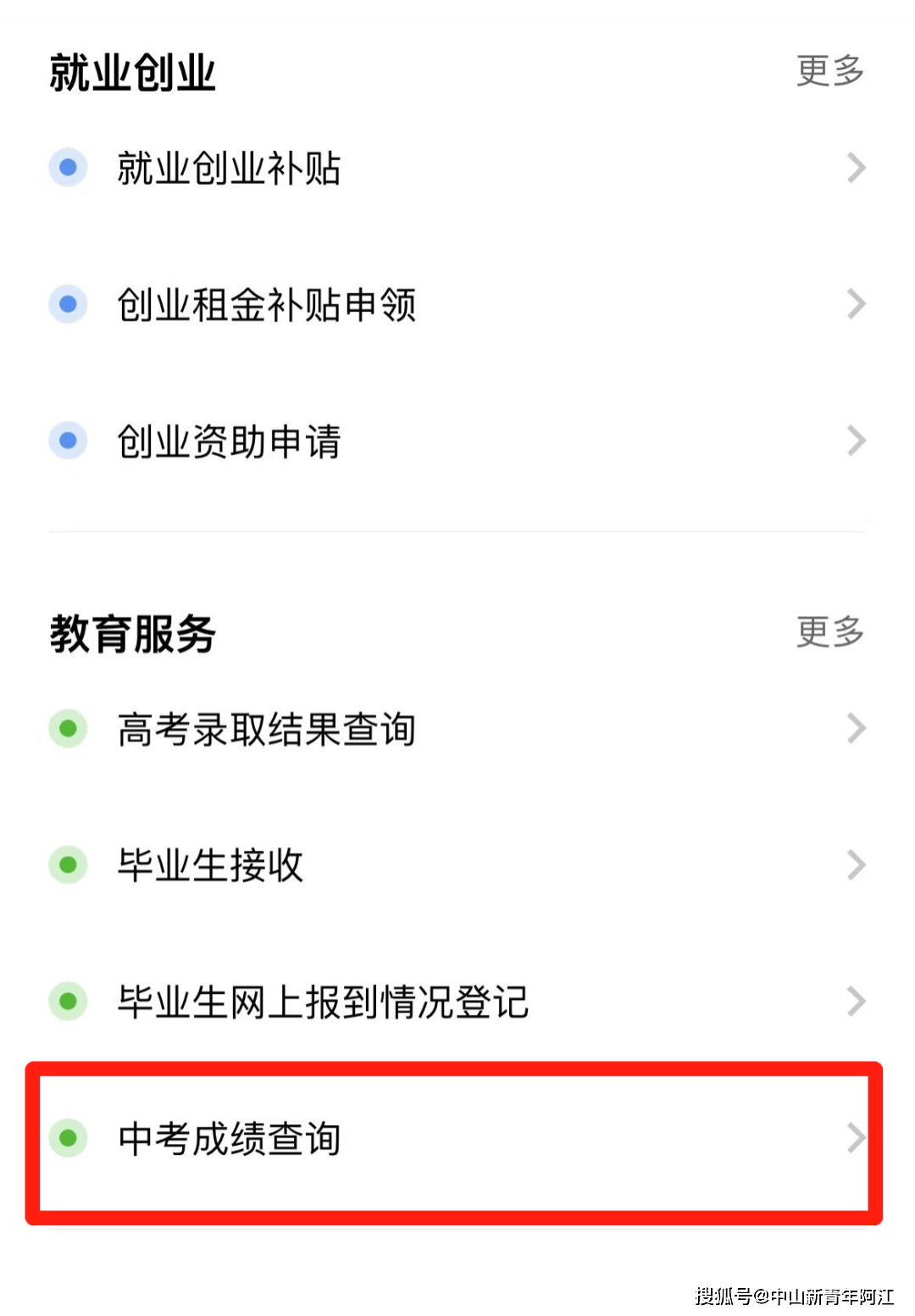 或者下拉页面,找到“教育服务”,点击进入后,点击“中考成绩查询”。