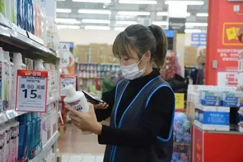 图 | 拣货员凌瑶在商超内认真核对商品信息