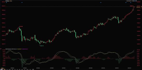 日线图上,周一(16日)现货钯金价格继续上行收阳线,昨日盘中最高点1993.75,最低点1935.70,收报1979.23,日内涨幅2.41%。K线走势看,近17个交易日中,市场多头占据主导,短期钯金价格延续上行趋势的概率较大。上个交易日钯金价格还未有效突破1982.01一线压力,短期仍关注该压力位争夺情况。中长期看,市场多头占据着主导,盘面大概率延续上行主趋势。MACD黄白线在0轴上方形成金叉放量,红柱扩张。综合来看,短期现货钯金价格能否有效突破1982.01一线压力。若钯金价格突破上方压力,后市将再创新高纪录;若不能突破,钯金价格短期大概率回调考验1913.38一线支撑。