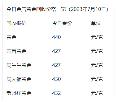 原标题:金价下跌!7月10日各大金店黄金价格多少钱一克?