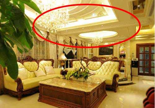 花样精致的吊顶华而不实,显得空间压抑累赘,除了好看根本没有什么用,还白白浪费了一笔钱,所以对于费用有限的业主来说,最好是轻硬装重软装,这些不太必要的吊顶能简就简。