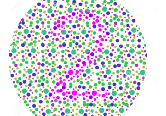 第三张图主要是用来区别红绿色盲者的,在这张图中隐藏着的数字是2,基本上视觉正常和色弱可以看出来,但是对于红绿色盲来说,他们看到的只会是一团很模糊的色块,如果你看不到这张图的数字的话,那也就代表着你跟驾照之间没有缘分。