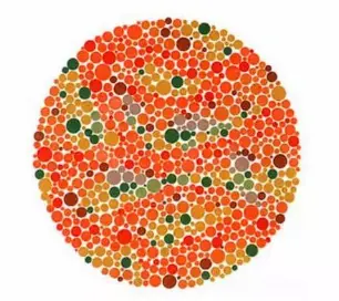 第三张图片,构成的色彩更加丰富。一般的正常人可能看大半天,也很难看出来它的图案是什么。但红绿色盲会在图片上面看到一个数字5。这个图片在视力检查的时候,运用广泛,并且结果非常准确。