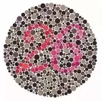 第二张图片,是偏灰色的背景,上面有数字2、6。正常人群很容易就能看到这两个数字。但如果是红绿色盲的话,只能看到,其中一个数字。这张图片是用来辨别是否是红绿色盲比较经典的图片。