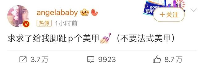 倒也不是Angelababy杨颖不爱干净,她这个脚趾甲之所以看上去如此是有原因的,一来,她原本就有甲沟炎,所以日常只能找修脚师傅帮自己来修剪指甲,自己一般是不亲自上手剪的,不过偶尔有时候通告繁忙,所以就会忘了,这次估计也是,没能够及时处理而已。