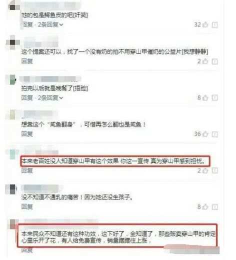 因为很多网友都表示,自己在看宣传片之前,根本不知道穿山甲能通乳,而杨颖却向他们普及了这个“知识点”,这样的行为很可能会起到反向作用,让不法交易增多。他们还纷纷吐槽,杨颖真的是智商堪忧,好心办坏事。不知道对于这件事,大家有什么看法呢?