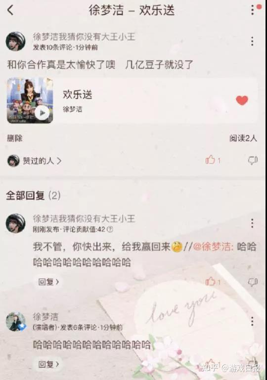 值得一提的是,面对粉丝的玩梗“和你合作真是太愉快了,几亿豆子就没了”,徐梦洁也是亲自下场做互动给粉丝捧场。用偶像与粉丝的主动互动,加深了游戏周年主题曲的渗透。