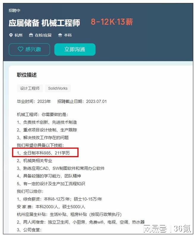 她介绍,他们从去年11月开始招聘,机械工程师岗位需求计划为50人,要求是机械专业对口的2023应届本科毕业生,半年已招53人。只是,这些人中只有两位是双一流大学本科毕业。张婷婷表示,仅就这个岗位而言,公司并不缺人,但一直缺更高学历的储备人才,“现在这个岗位还在招聘中,我们欢迎更多人才加入。”