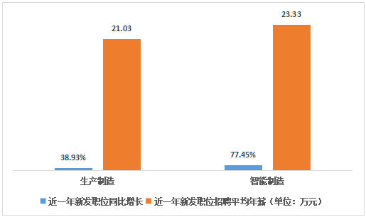 此前,猎聘发布过一份《2022智能制造中高端人才就业大数据报告》显示,近一年生产制造领域的新发职位仅次于IT/互联网,招聘薪资也水涨船高。其中,智能制造的职位比上一年增长77.45%,几乎是整个生产制造领域新发职位增速的两倍。