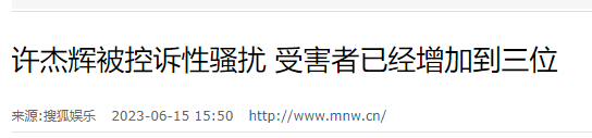 有黄云歆,胡馨仪先后出面爆料,称老牌咖许杰辉是以试镜为由多次试图潜规则性骚扰女艺人——