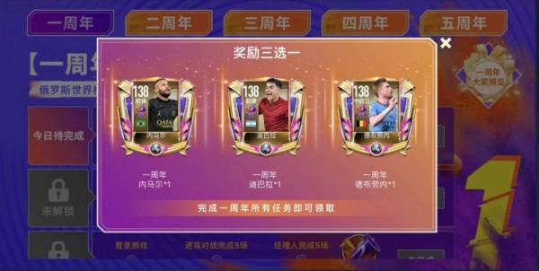 在我们游戏中,参与五周年活动的章节赛事,也可以获取不同年度的周年庆球员,完成相关赛事即可免费领取对应的周年庆球员。