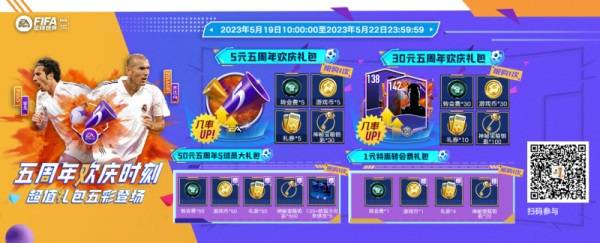 亲爱的《FIFA足球世界》玩家朋友们,时光荏苒、光阴似箭,不知不觉中《FIFA足球世界》已经与大家共同度过了五年时间!回首往昔,丰富多彩的活动总能让我们在这片场地上体验到足球带来的那份纯真的快乐。展望未来,我们也必将继续携手,在《FIFA足球世界》的赛场上继续奔腾。在此五周年之际,《FIFA足球世界》也推出了丰富多彩的活动,我们一起来看看今年周年庆有哪些不容错过的精彩内容吧!