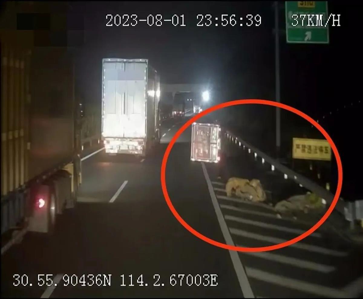 8月1日晚11时56分,京港澳高速公路孝感出口处附近,一辆侧翻的小货车引起中通快递湖北车队驾驶员姜金火的注意,他连忙喊醒熟睡在后排的副驾王林松。