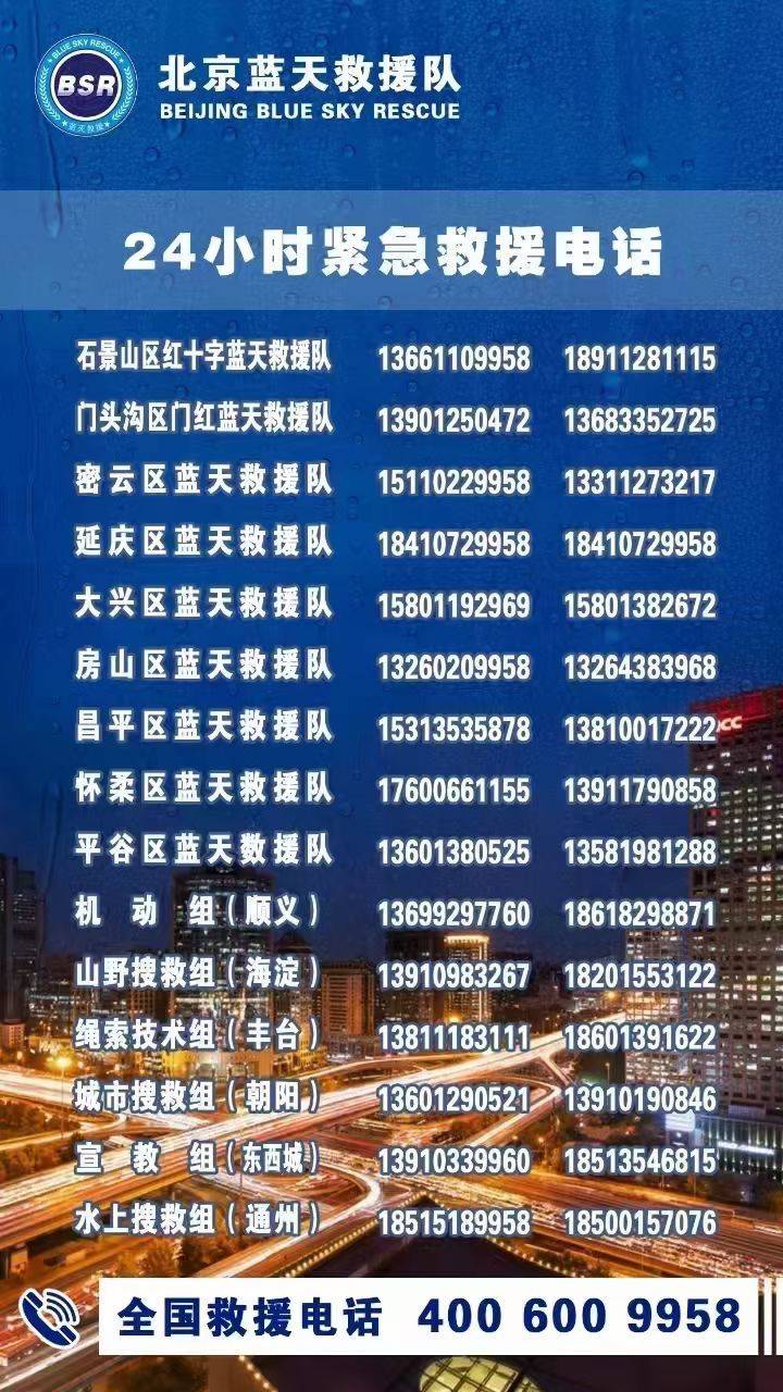 原标题:北京蓝天救援队公布全市救援电话,救援队员24小时待命
