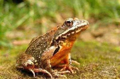 林蛙又称“哈士蟆”、“田鸡”、“雪蛤”、“油蛤蟆”,属两栖纲无尾目蛙科,常见种类有中国林蛙、黑龙江林蛙中国林蛙体长4~8厘米,较修长,头扁平,头宽略大于头长。吻端圆而略尖,鼓膜显著,鼓膜处均有明显的三角形黑色斑,后腿长,两后腿可以交叉。皮肤较平滑,背部土黄色或灰绿色,雄蛙腹部乳白色,雌蛙腹部红黄色,散有深色斑点。雌大雄小林蛙主要分布于我国吉林、黑龙江、辽宁、内蒙古等地。一般生活在潮湿阴暗的阔叶林中,每年4~5月份为繁殖期,产卵于河流附近小型静水泡的浅水处进行,产卵后在土壤中休眠15天左右,然后上山活动。林蛙的生长期为5~7年
