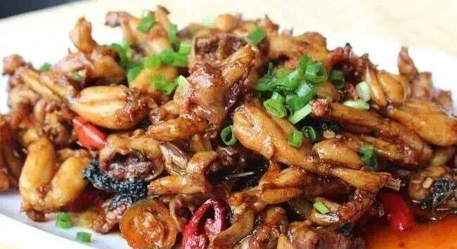 林蛙可食用,其肉质细嫩,味道鲜美,烹调中可整只使用或拆腿使用,如“红烧哈士蟆”、“清汤哈士蟆”、“宫保田鸡腿”等