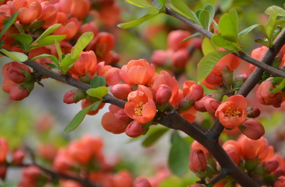 木瓜海棠、贴梗海棠的果实最特别,它们果皮光滑,果肉木质化,形状像木瓜,硕大,尤其是木瓜海棠果实可重达2斤,秋天颜色变为金黄,散发出浓浓的芳香。
