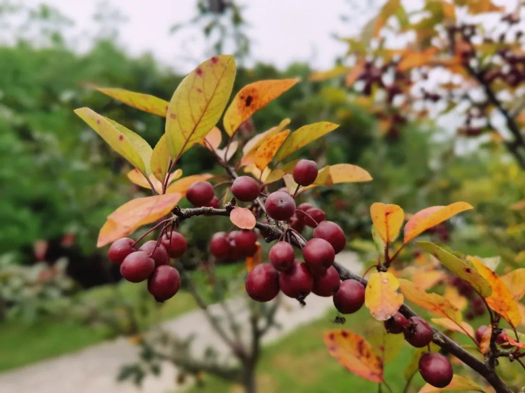 目前,已进入海棠果的最佳观赏季,漫步于共青森林公园海棠林干道,大片红红绿绿的海棠果琳琅满目,各具特色。等到秋天,果子成熟后就会成为鸟儿和松鼠等小动物的美食。