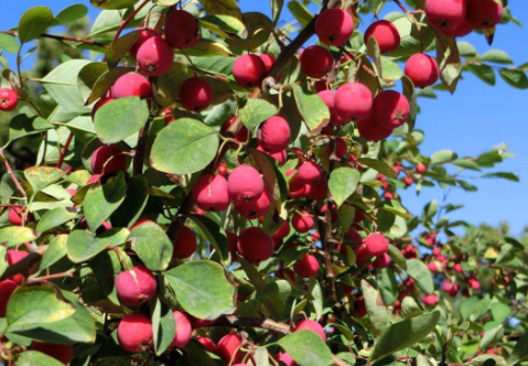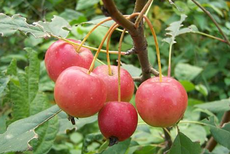 等到了9月份的时候,海棠果也就成熟了。这种果子长得很像苹果,只是个头要小很多,一般最大的也就是鸡蛋般大小,所以在北方地区也把海棠果称之为“小苹果”、“野苹果”等。海棠果在没有成熟的时候是青色的,而当它变成了红色之后,也就意味着成熟了。并且香气浓郁,老远就能闻到海棠果的香味,看到它更是想要采摘下来尝一尝。