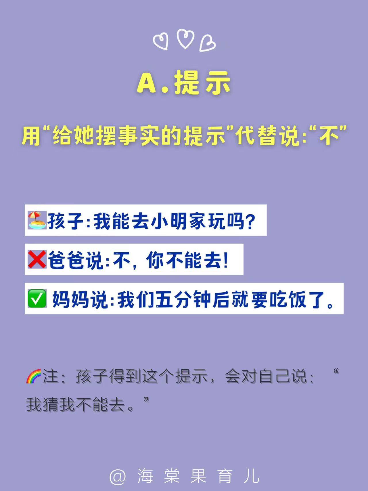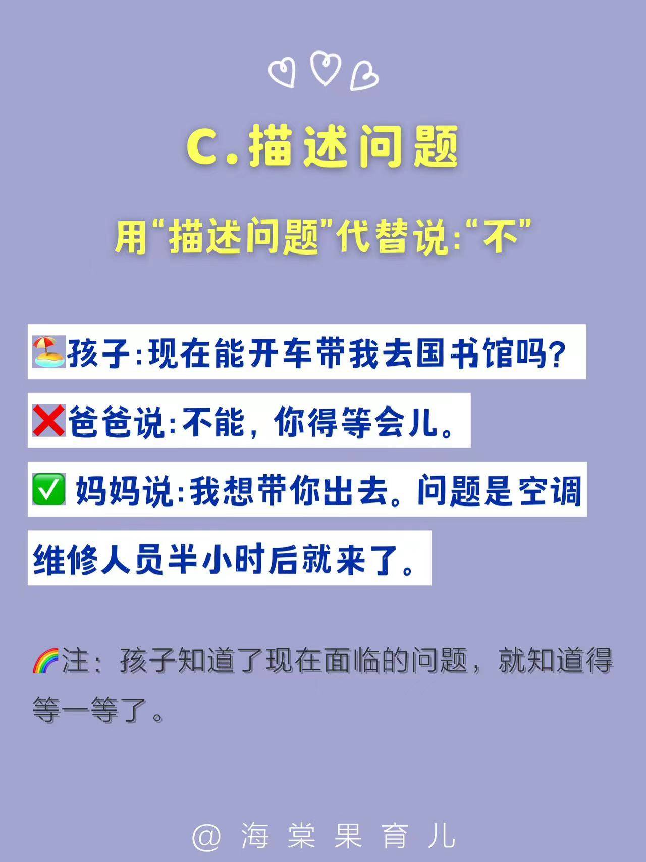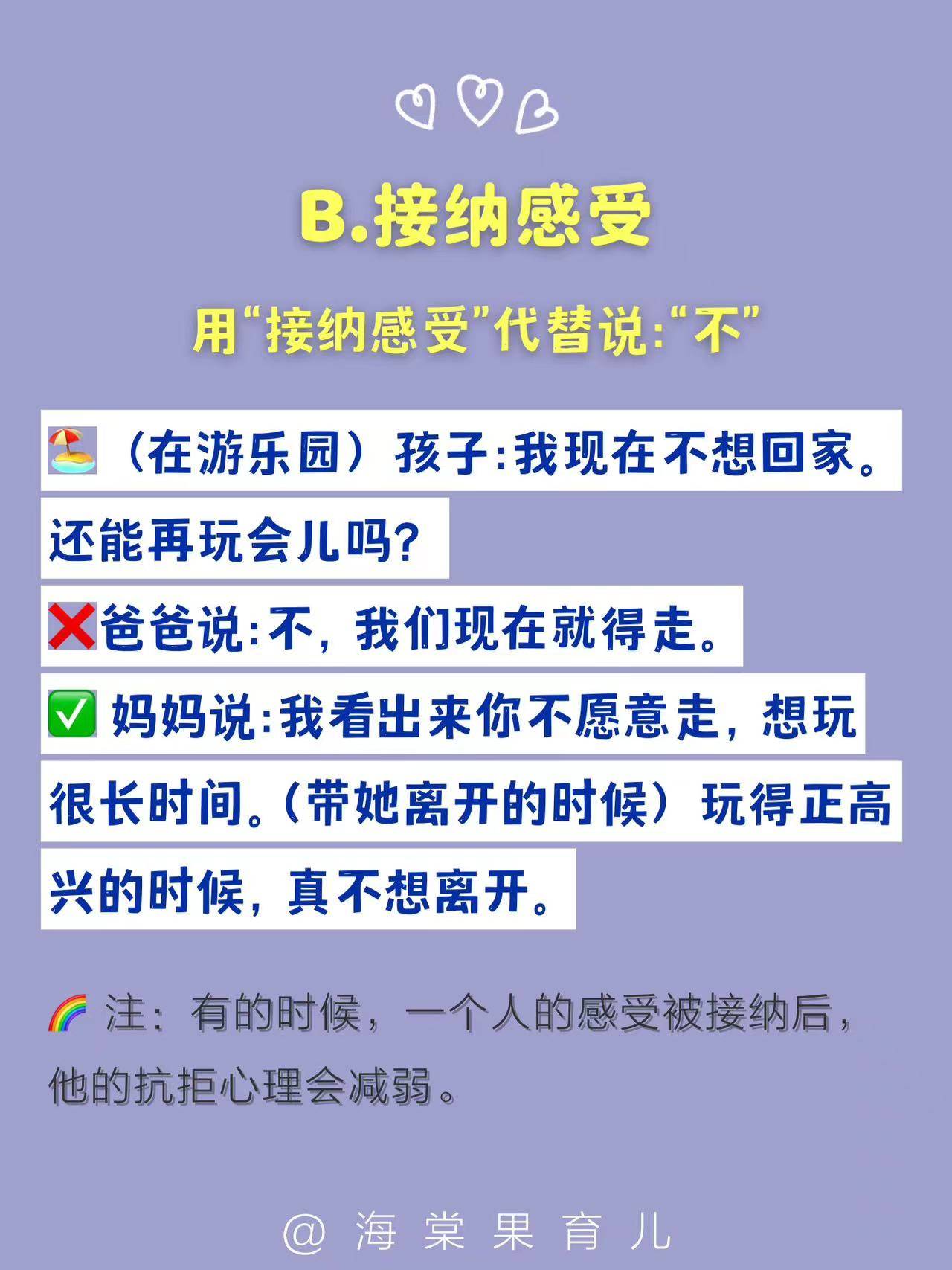 不过在日常生活中,父母可以尽量用积极的语言来表达我们的意愿,而不是简单地说“不”。