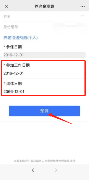 *此功能测算是基于参保人员已经缴纳养老保险费满15年的社保信息,进行的测算,无需手动输入各类变量数据,让养老金预测更精准更简单~