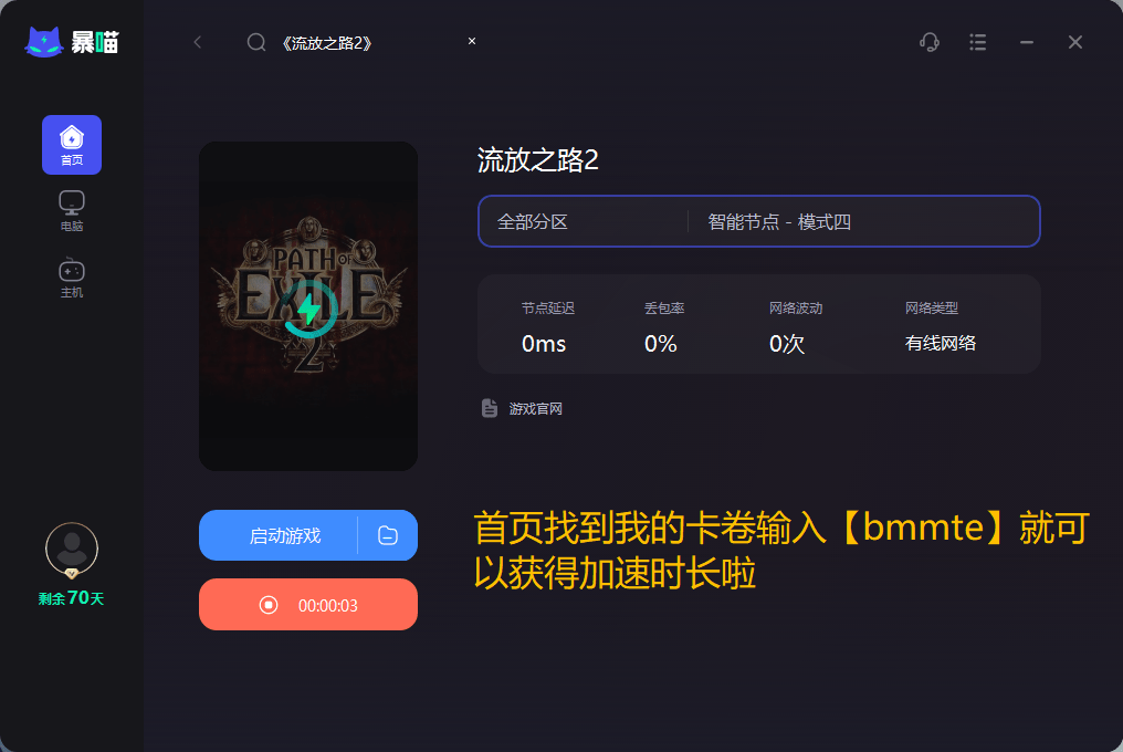 去首页我的卡卷内输入【bmmte】可获得加速时长。