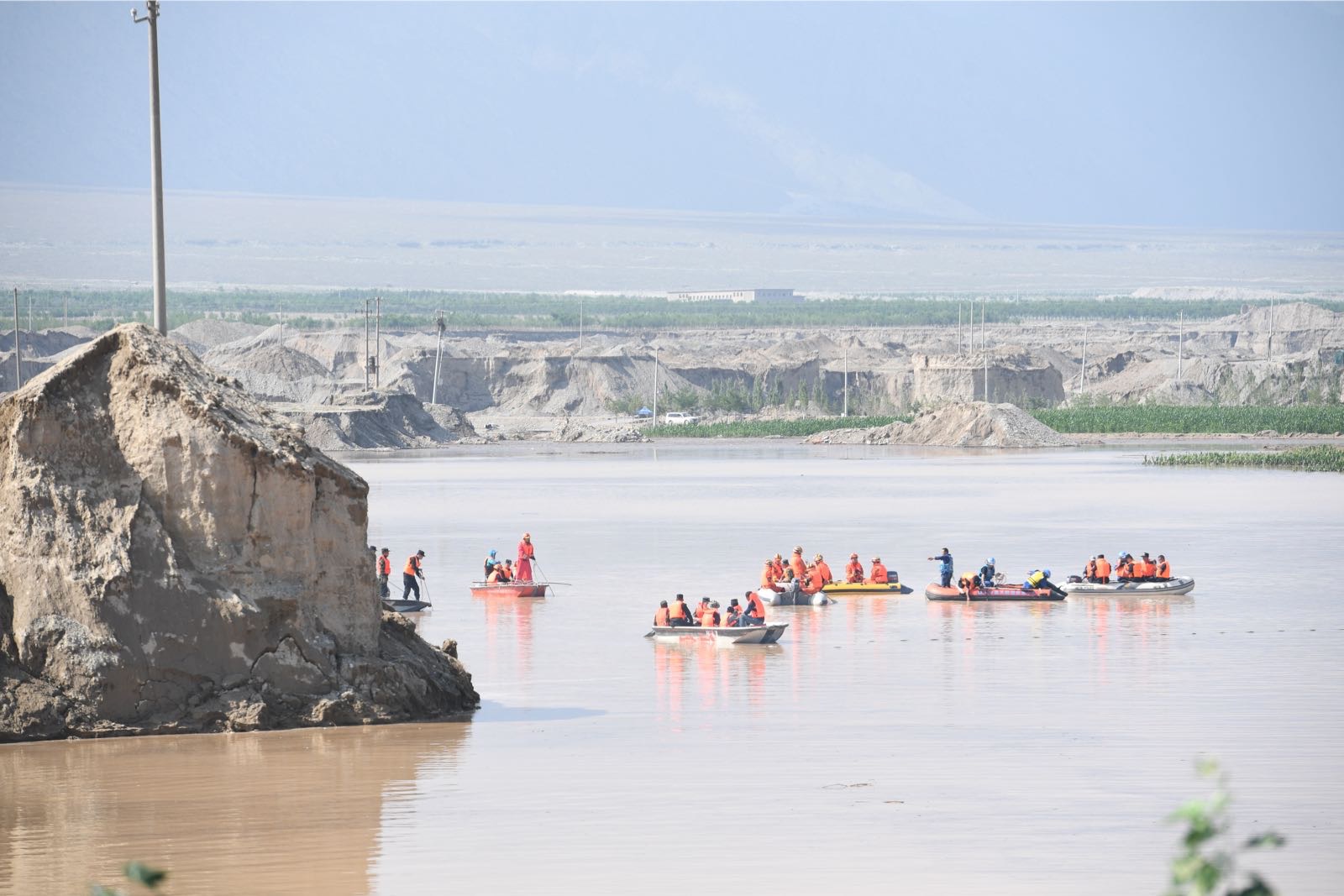 那天早上,也有一个利好消息传来——洪水下游汇成的一片“湖”上,找到了两个救生圈。此后,搜救工作的一大重头就锁定在这片水域中。