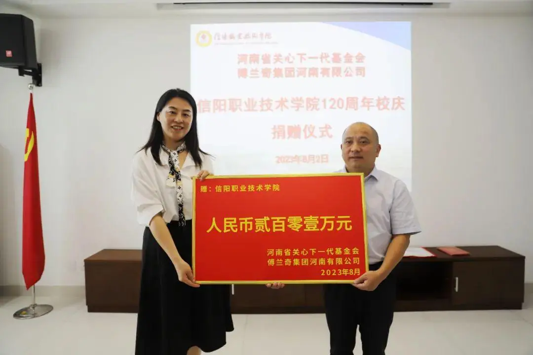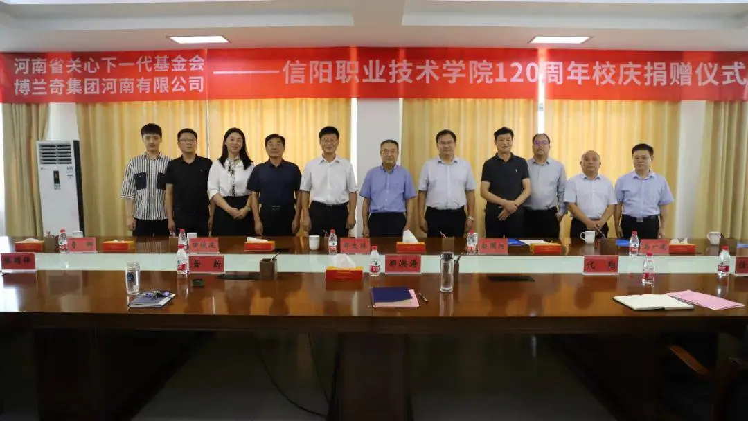 本次捐赠活动积极助力献礼学校120周年校庆,同时将促进信阳职业技术学院与河南省关心下一代基金会、博兰奇集团河南有限公司建立长期稳定、互惠互利的友好合作关系,校企将不断拓展合作领域,创新合作方式,着力推动职业教育高质量发展。