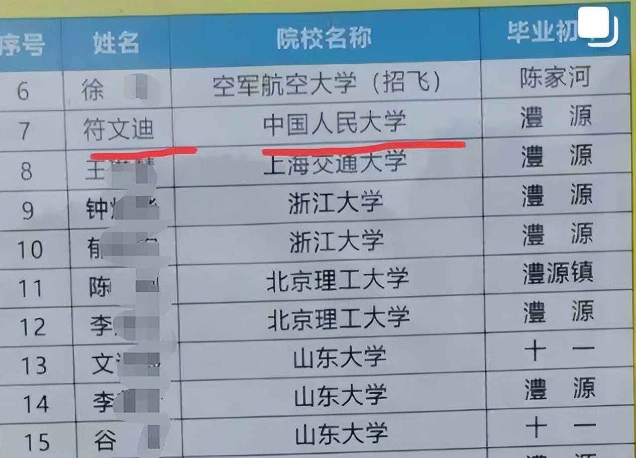 好在经过学校和家长的疏导,没有因此而影响她的备考状态,最终考出了645分的好成绩,省排名在140名左右。即使上不了清北,985也是她囊中之物。据桑植一中公布的高考榜单而知,符文迪已被中国人民大学录取。从分数上看,很有可能是人大307组历史类国家专项。