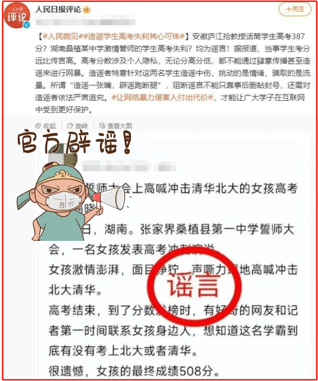 就连官媒都看不下去了,痛批造谣高考生落榜的人,其心可诛。每一位在学业上取得好成绩的学生,哪一位不是背后付出了常人难以想象的汗水,没有人能够随随便便成功,韦神也是如此。