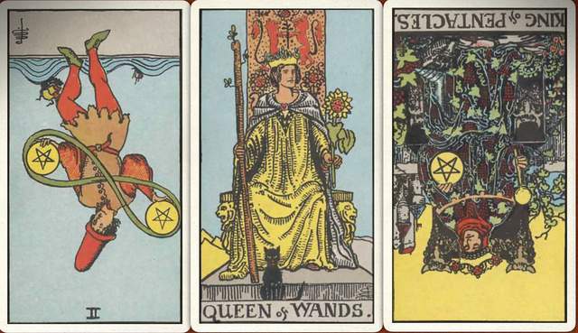 卜牌:星币二- 权杖皇后+ 星币皇帝-