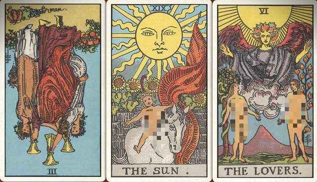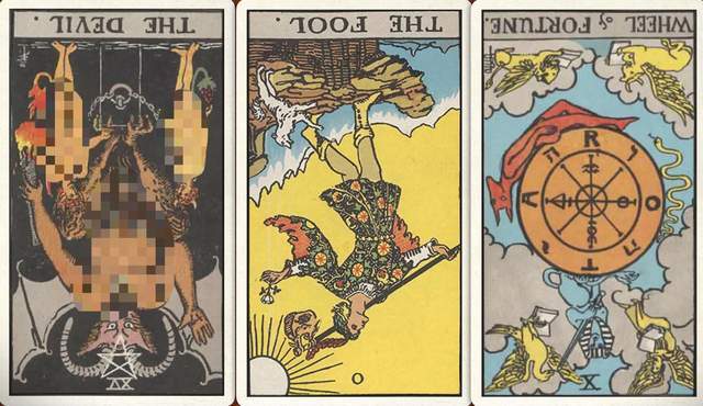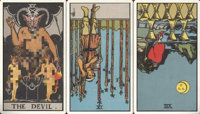 卜牌:恶魔+ 权杖九- 圣杯八-