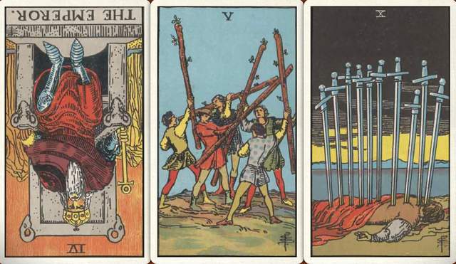 卜牌:皇帝- 权杖五+ 宝剑十+