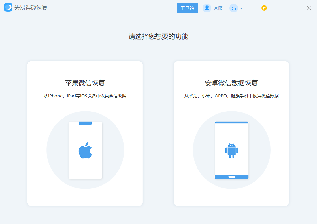 如果你没有备份你的聊天记录,或者备份的记录中并没有你要找的记录,你可以尝试使用第三方恢复工具来恢复你误删的微信聊天记录。失易得微恢复软件通常需要先将手机与电脑连接,并运行软件扫描手机中的数据,然后便可恢复删除的聊天记录。