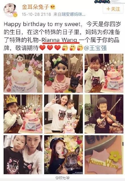 王宝强女儿四岁生日这天,马蓉公开了以她女儿命名的服装品牌。品牌的logo图案是一条斗牛的狗,到处都是这个狗的logo,蛋糕上也有这只狗。然而,这只狗的主人,就是王宝强的经纪人。经纪人微博小号里全是这条狗。