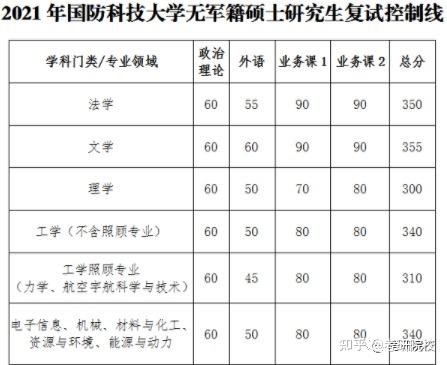 现公布国防科技大学2021年无军籍硕士研究生招生复试控制线,军人硕士研究生招生复试控制线待上级政策明确后公布。