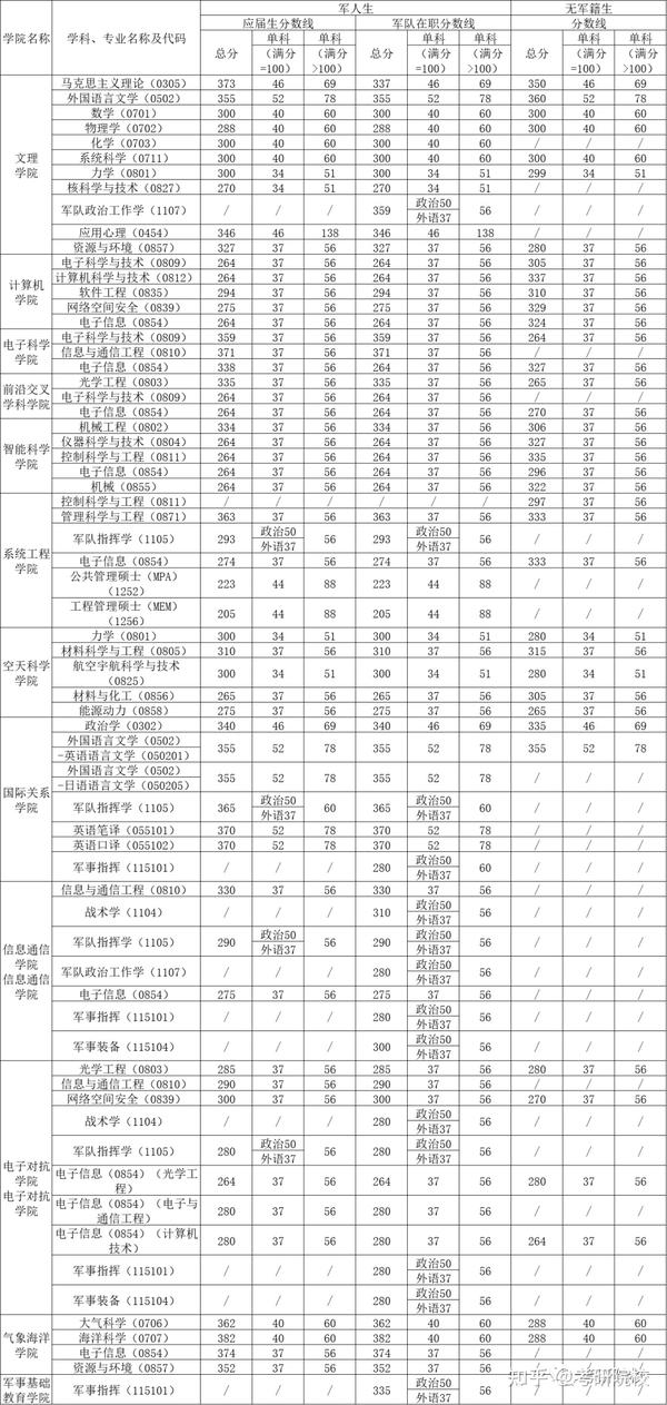 1、2021年国防科技大学研究生分数线
