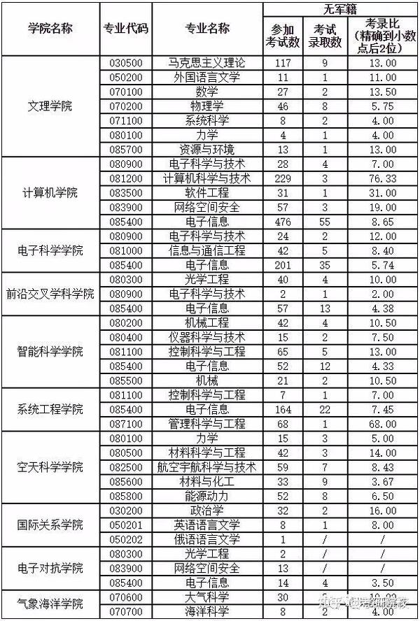 国防科技大学2021年报录比