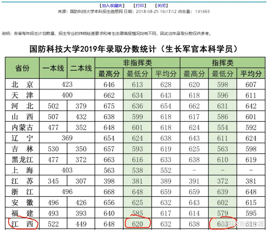 国防科技大学,官网上的录取数据,一为603,一为620,这个分数与上面江西省考试院公布的数据,对不上!