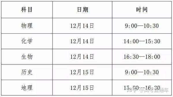 2021年12月8日上午8:00-9:30生物、10:30-12:00历史,下午3:00-4:30地理。