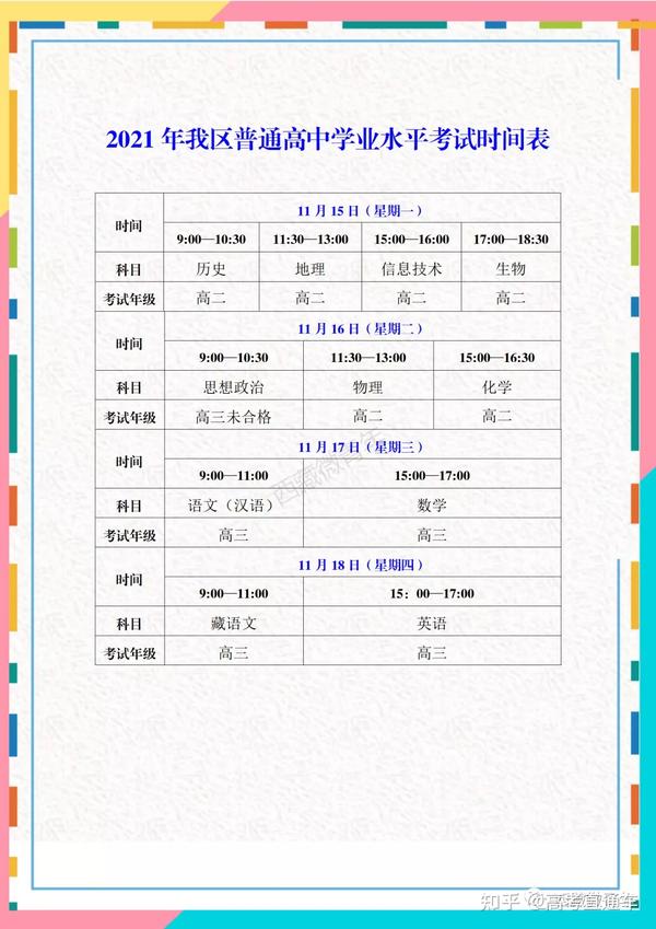 我区普通高中学业水平考试将于2021年11月15日至18日举行。