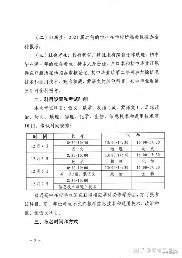 1.高级中等教育学校二年级考生可报考本次所有考试科目,高级中等教育学校三年级考生只须报考未合格科目。